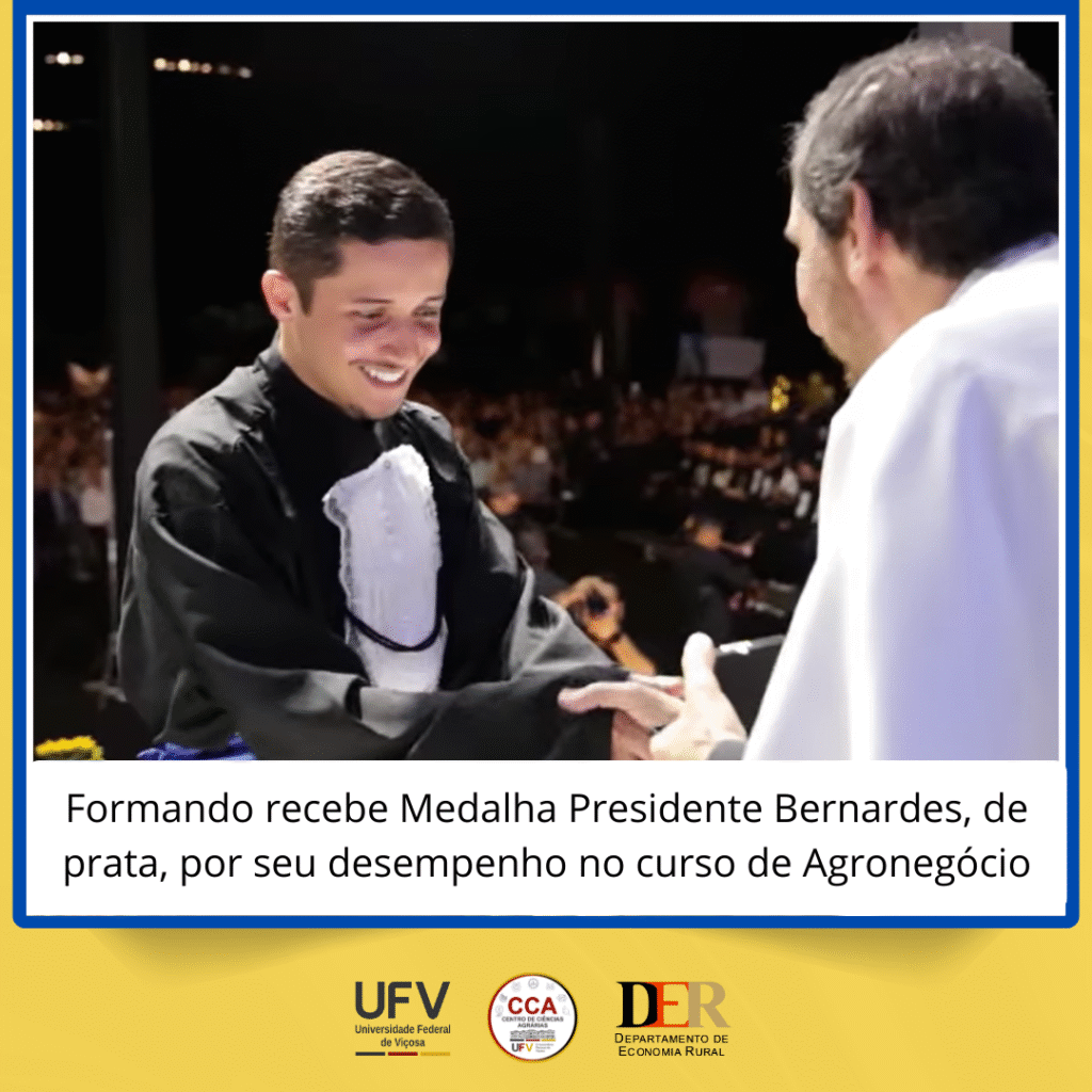 Formando recebe Medalha Presidente Bernardes, de prata, por seu desempenho no curso de Agronegócio